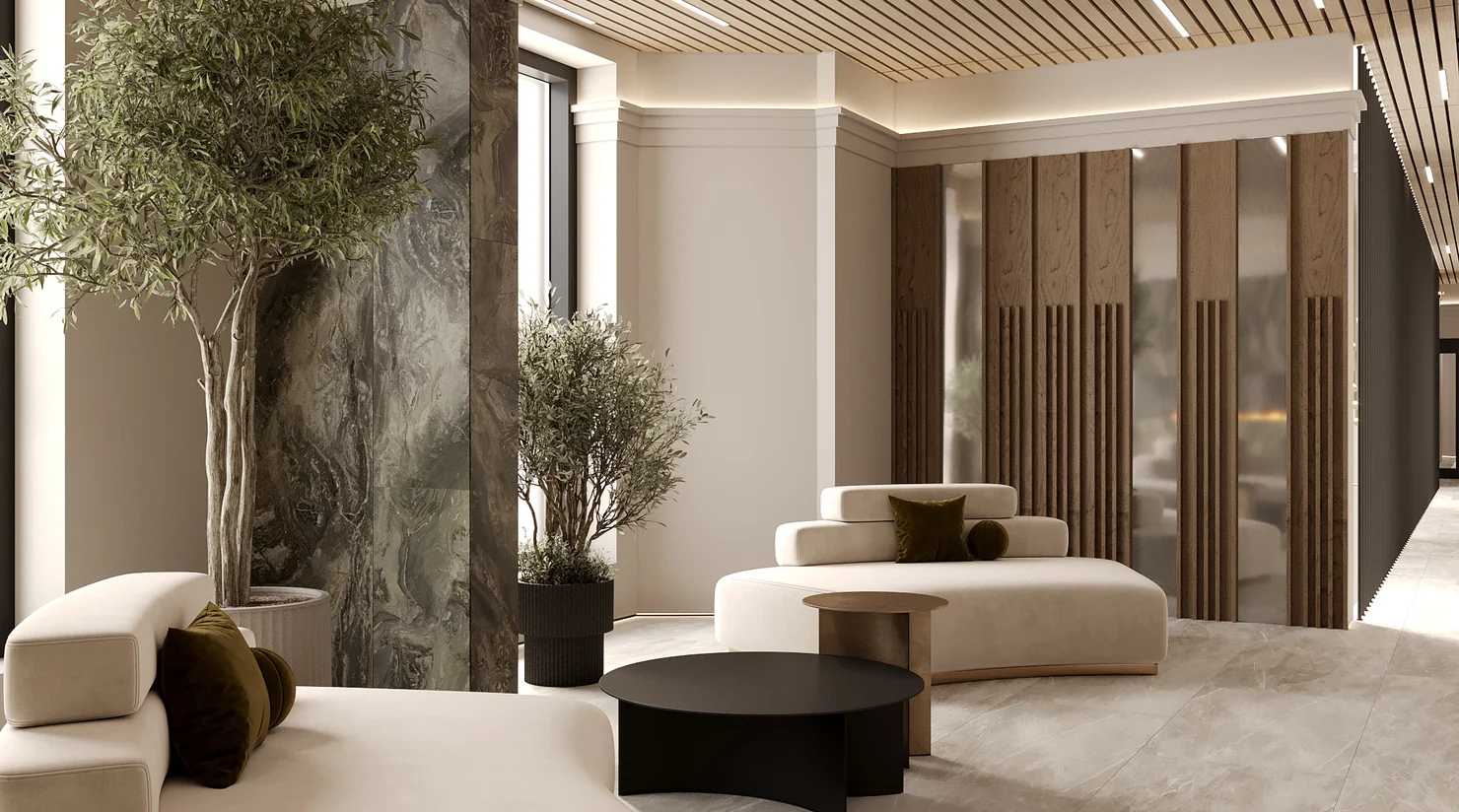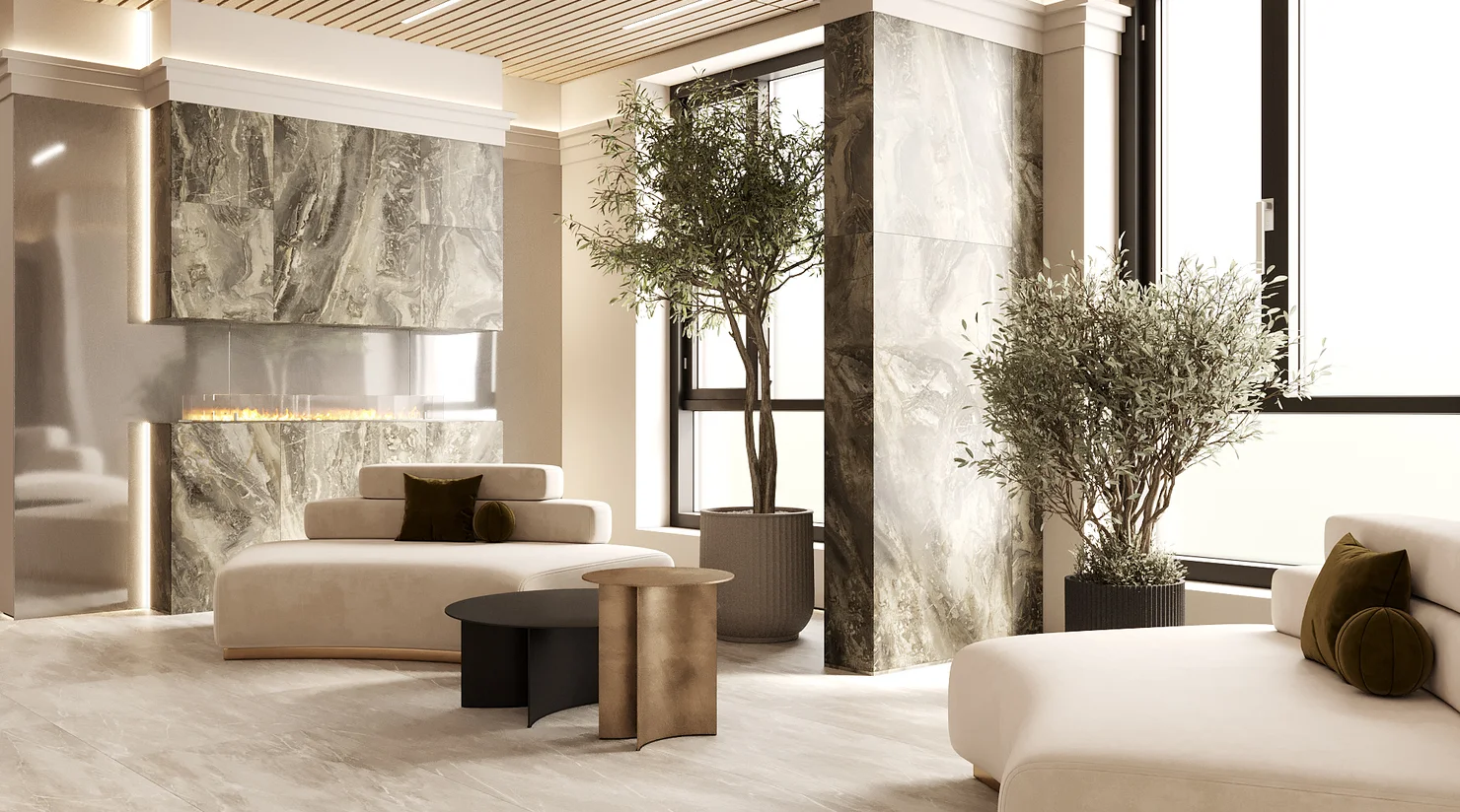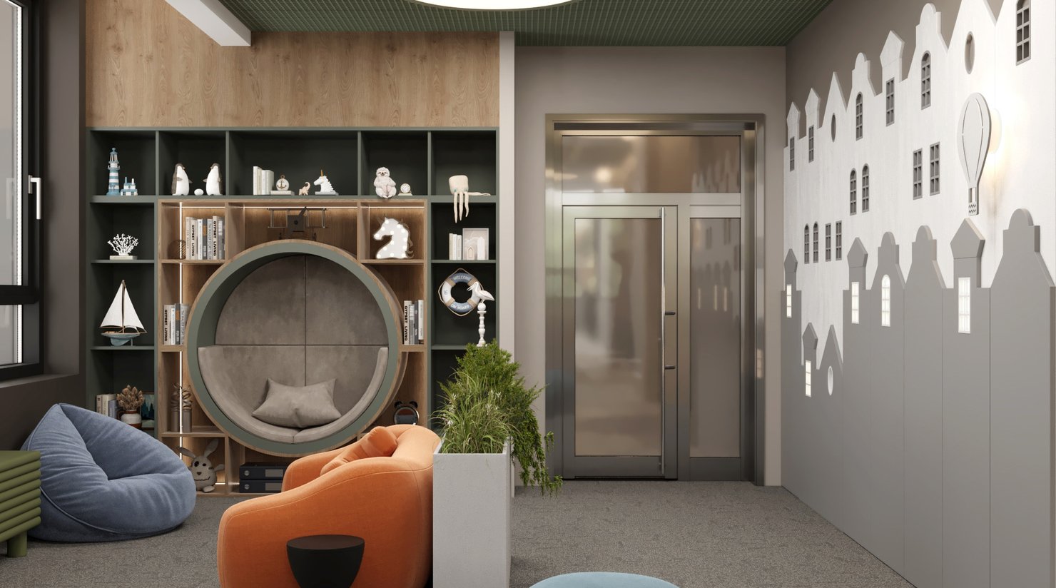 Атмосферное и максимально комфортное пространство для переговоров. Оно создано в лобби не только для закрытых деловых встреч взрослых резидентов дома, но и для его маленьких жителей, которые смогут заниматься здесь с репетиторами.