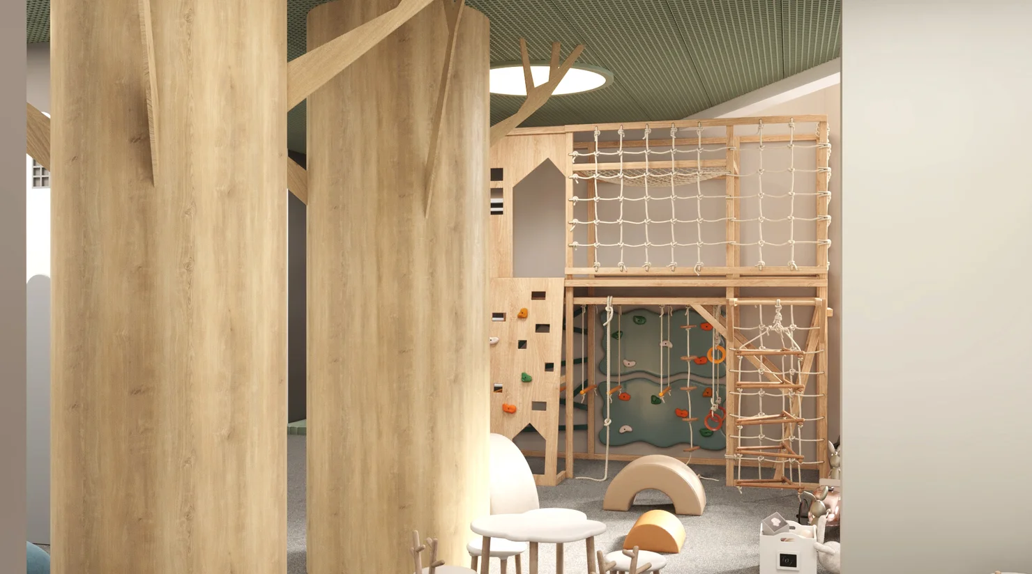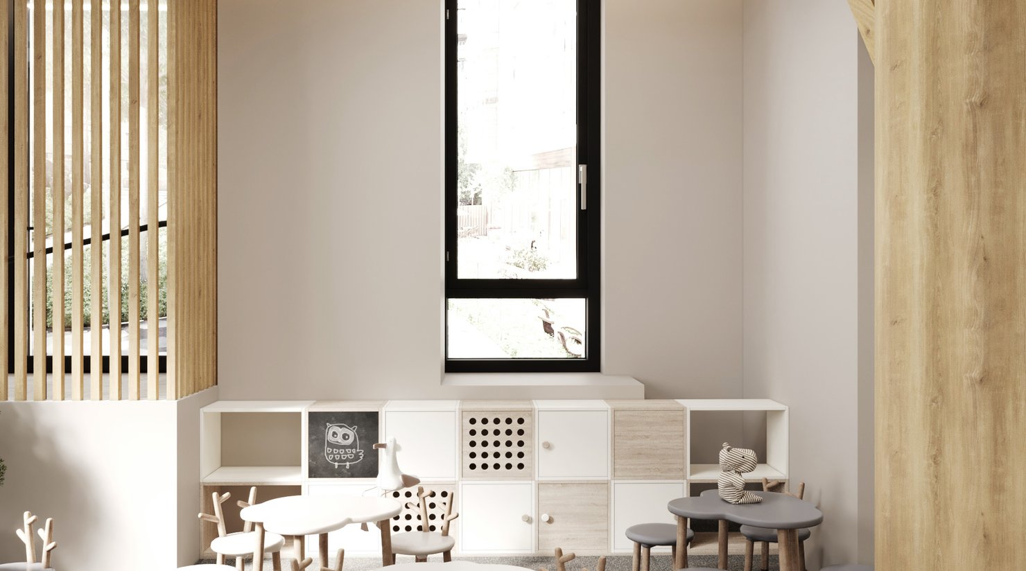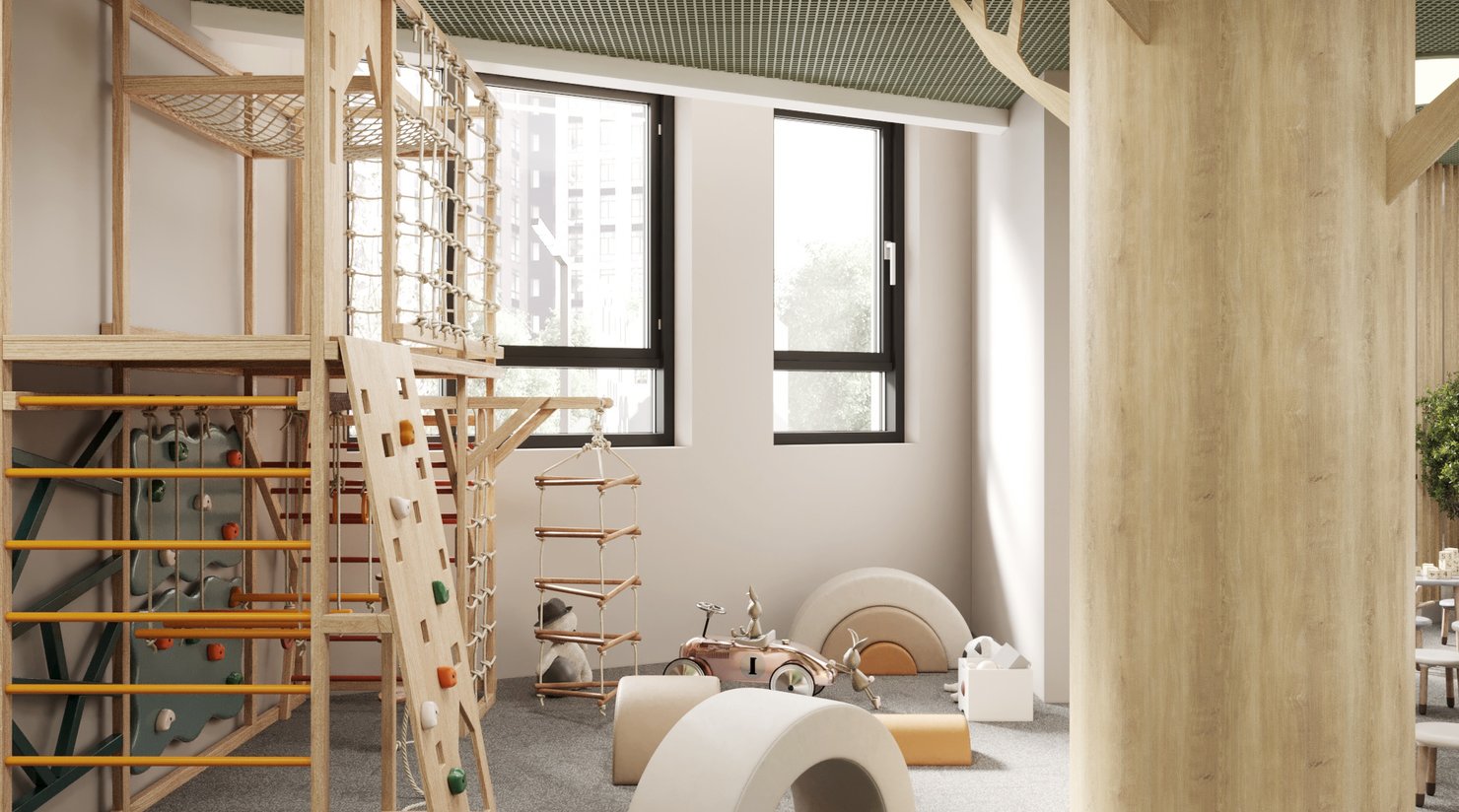 Пространство, сопоставимое по своему функционалу с детским центром. Площадь порядка 100м2 предназначена для игр, развивающих занятий и мероприятий. Благодаря грамотному зонированию здесь будет интересно и малышам, и подросткам.